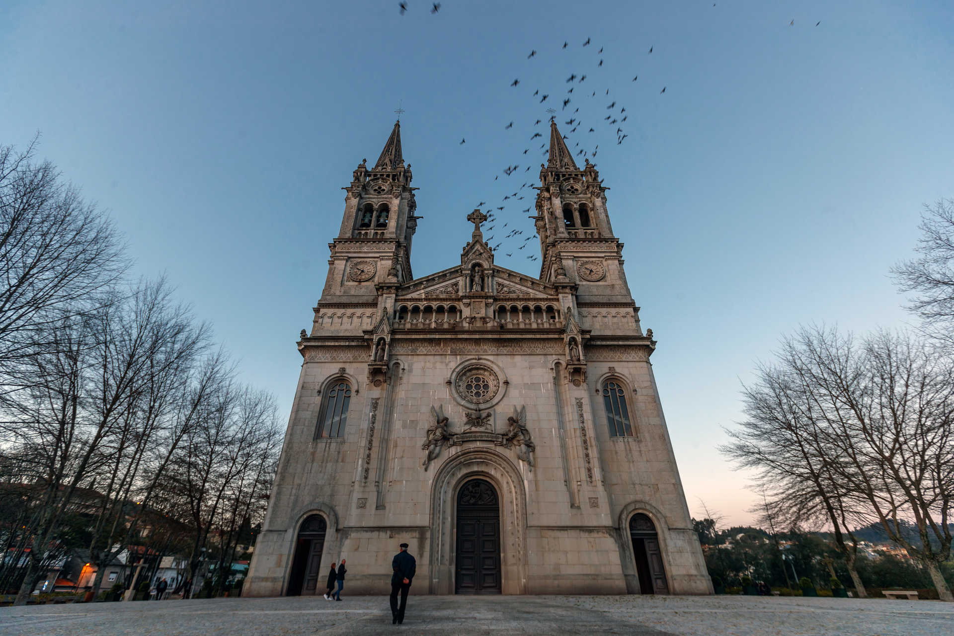 A cidade vai ficando para trás, cada vez mais distante à medida que o teleférico sobe a caminho da Penha. A viagem faz-se prazerosamente, a vista alcança o castelo, o Paço dos Duques de Bragança, o estádio e toda a urbanidade que se desenvolveu em volta das antigas muralhas. Ao invés, a montanha aproxima-se, tanto que já nem se lhe toma as medidas, como um gigante de rocha e vegetação que ladeia a cidade, a nascente.