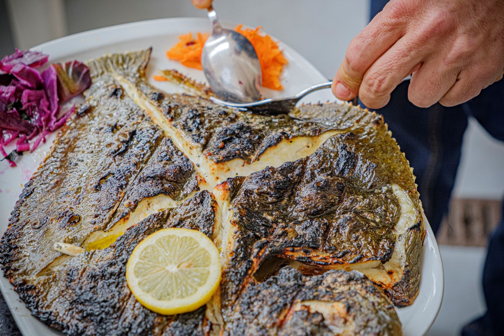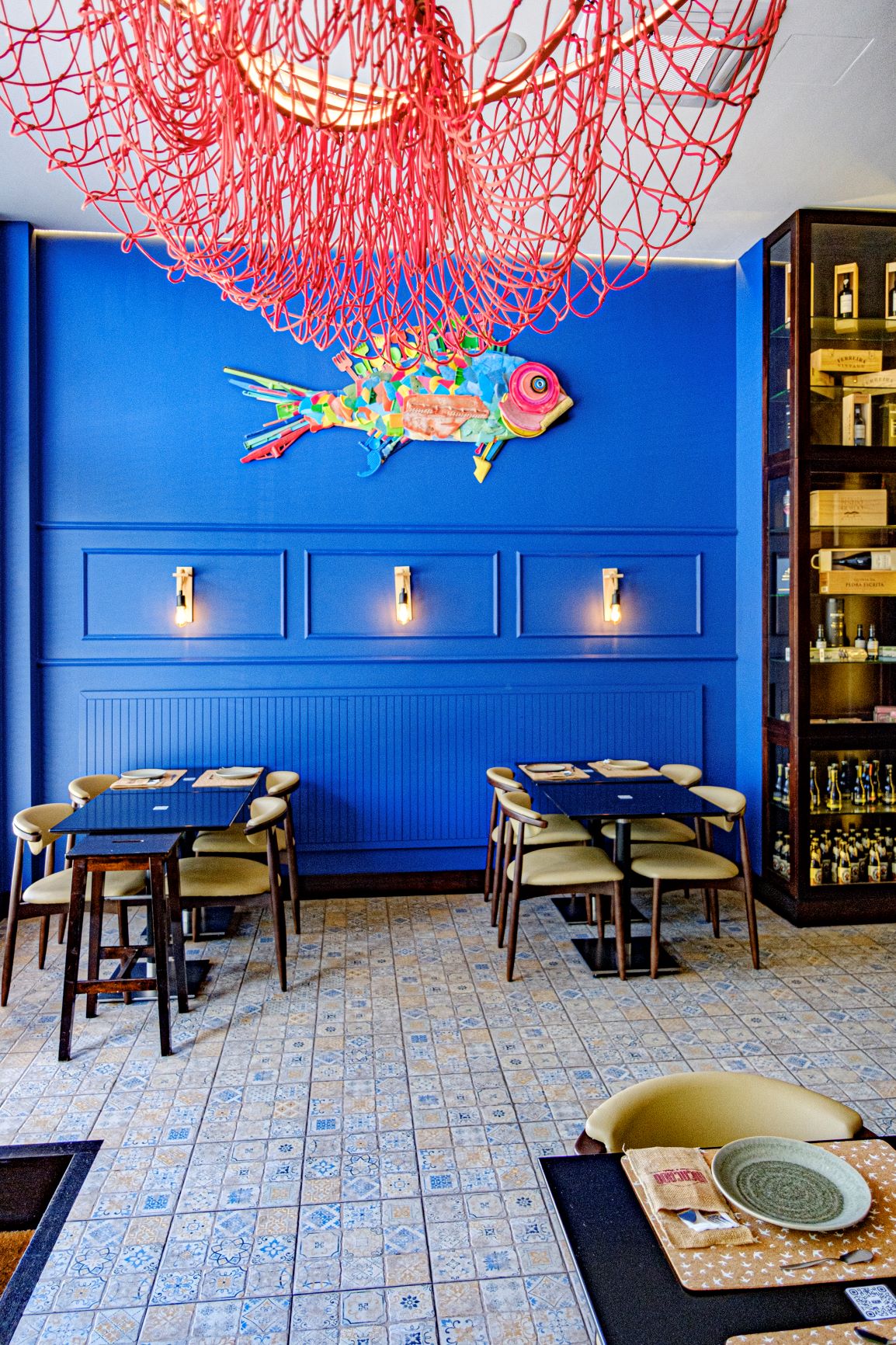O espaço começou por funcionar como wine bar. “Foi uma brincadeira”, conta Pedro Brito, o proprietário, mas ficou sério, a ponto do empresário regressar de Angola e converter o bar em restaurante em 2018. A sopa de peixe – a que os mais corajosos podem juntar umas gotas de jindungo -, abre normalmente a refeição, que por regra segue com peixe ali do mercado. “O cliente chega e vai escolher o peixe diretamente às bancas”, explica Pedro. Depois de preparado, é simplesmente levado à grelha. Pode acompanhar com arroz caldoso de coentros, ou de tomate, por exemplo. Estes são os mais escolhidos pelos peregrinos que optam por parar aqui para almoçar. “Costumam passar por aqui entre as 9h e as 11h. Dão uma volta pelo mercado, abastecem-se de fruta. Alguns acabam por almoçar e ficam aqui a contar histórias, e até mudam os planos e ficam a dormir novamente em Matosinhos, aqueles que não vêm com os dias contados”, desfia Pedro.