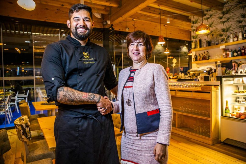- O chef Pedro Amorim com Teresa Tomé, dona do Mar Salgado. (Fotografia de Reinaldo Rodrigues/GI)