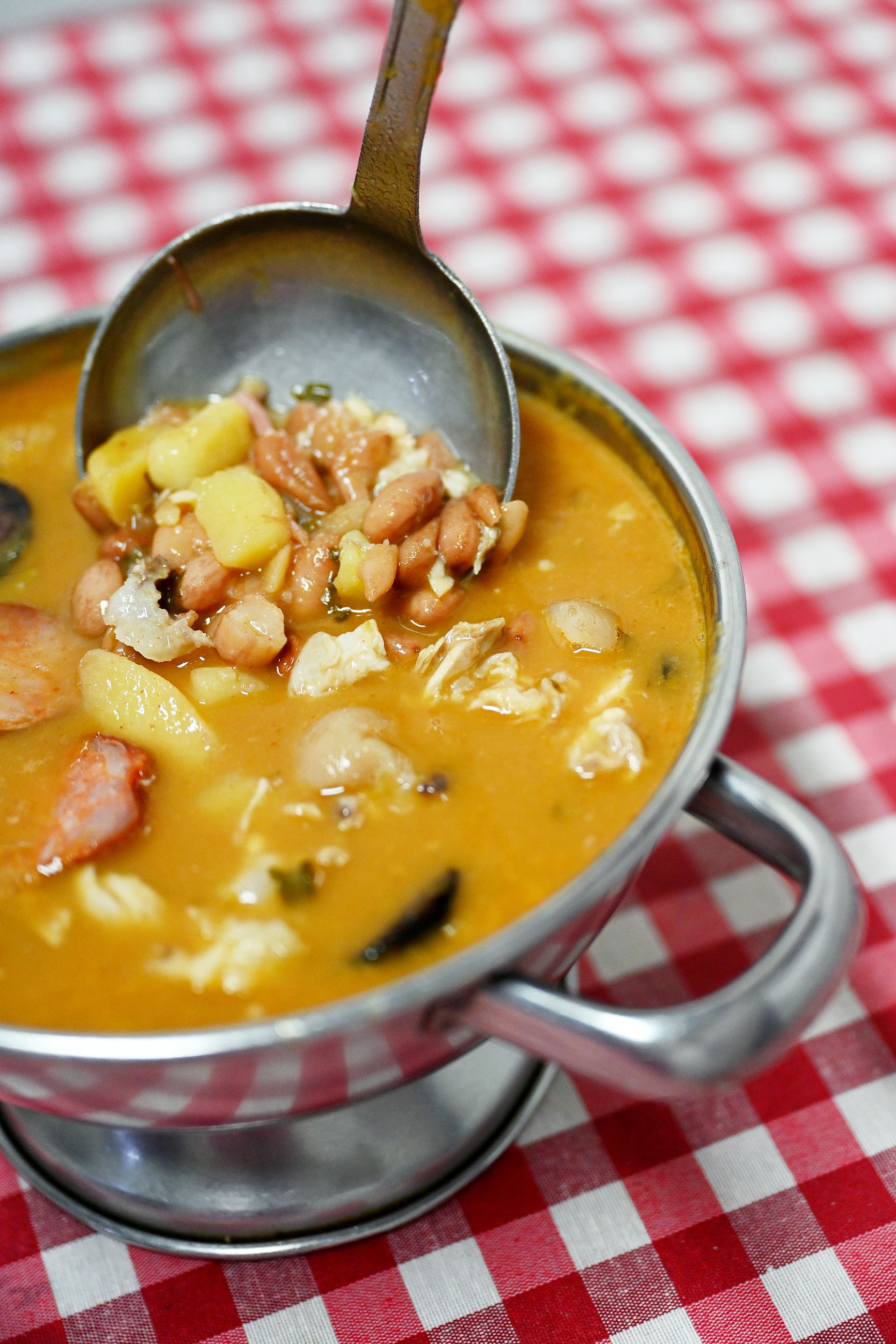Cebola, alho, louro, feijão-catarino, chispe de porco, toucinho salgado, enchido local, colorau, pimenta, carnes salgadas, batata e coentros são obrigatórios na sopa da pedra. (Fotografia de Rita Chantre/Global Imagens)