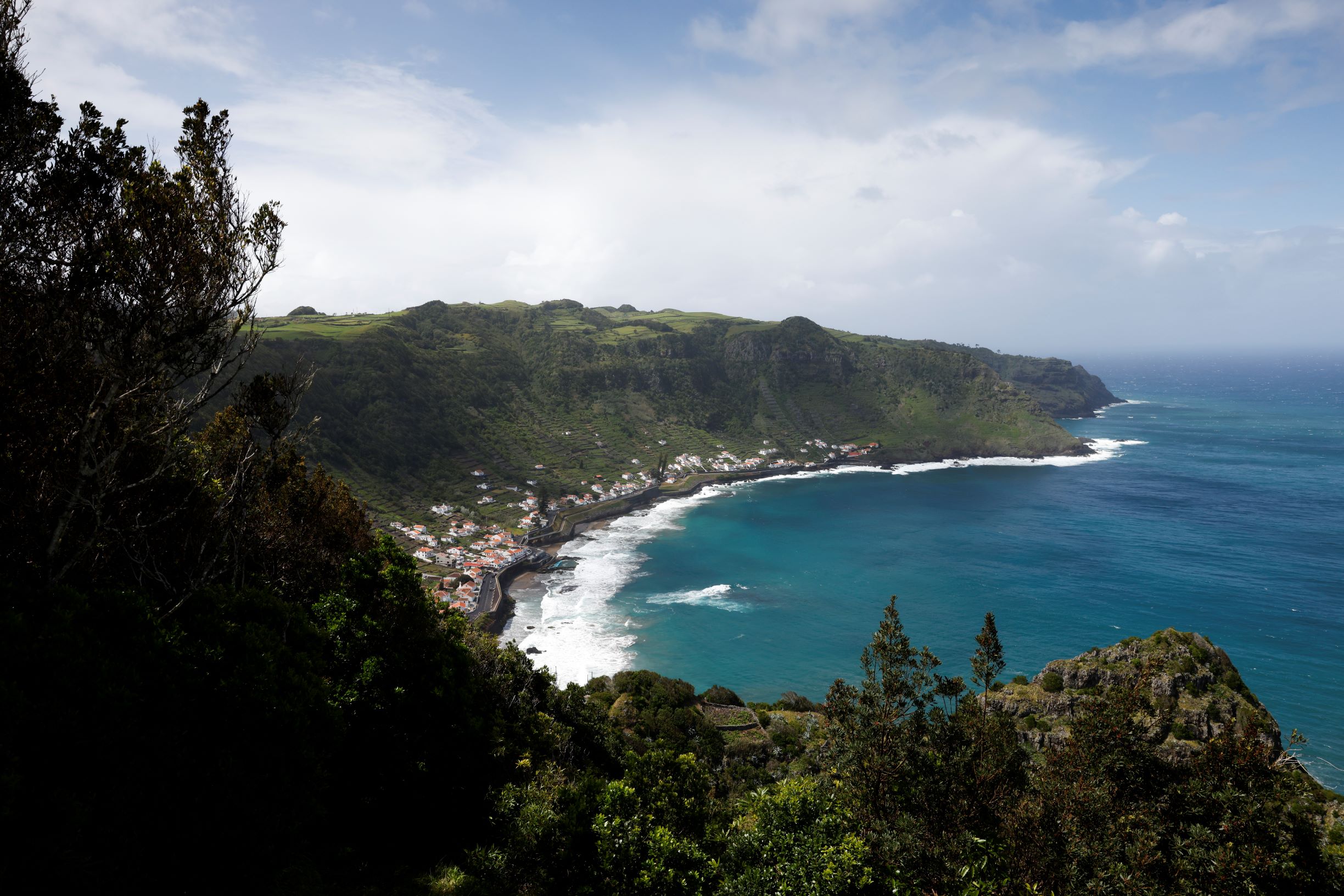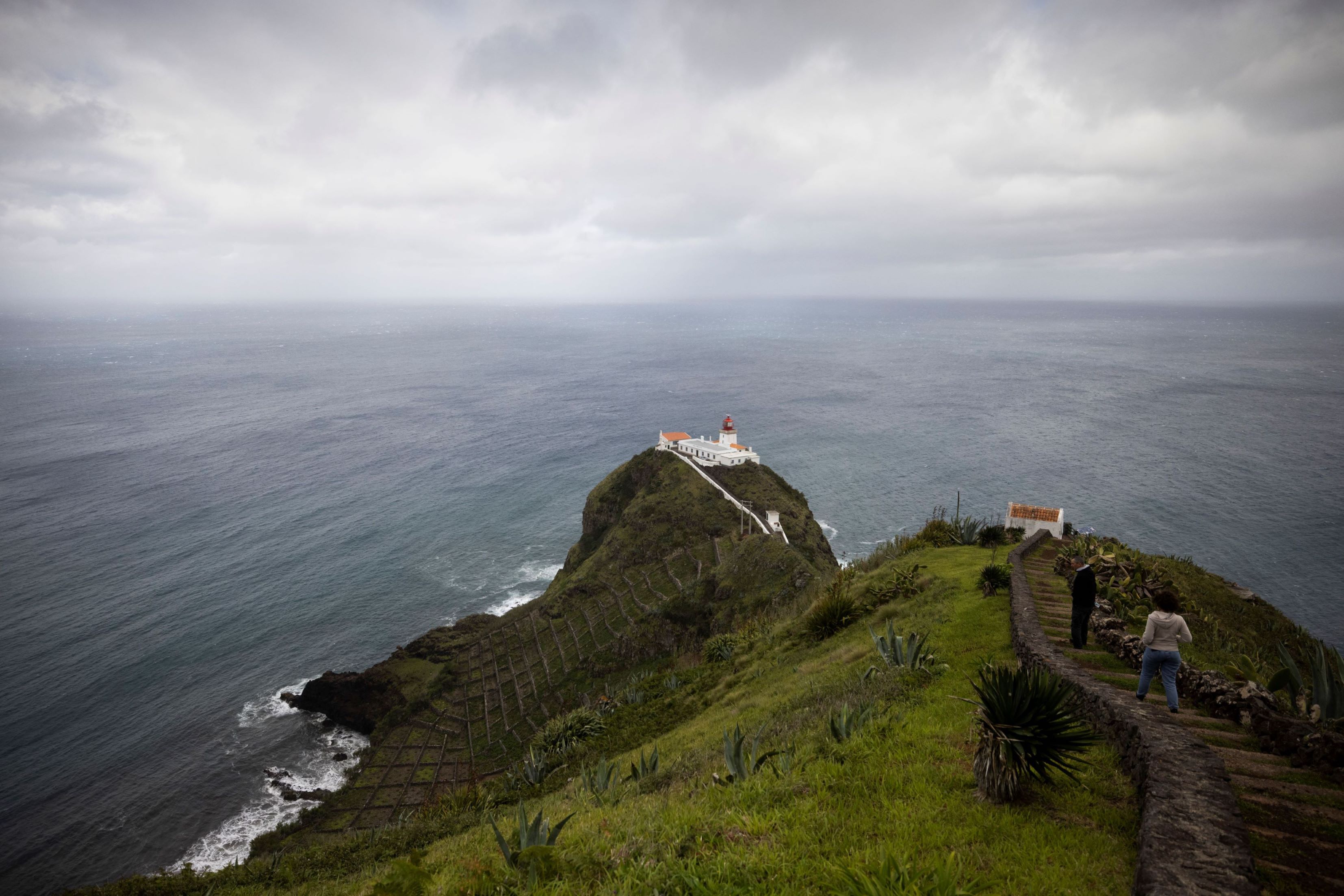 O caleidoscópio meteorológico de Santa Maria é um espetáculo a que assistimos absortos e fascinados durante horas. Sentados à mesa do restaurante-bar Ponta Negra, na Baía de São Lourenço, extremo oriental da ilha – e a bem dizer do arquipélago -, a saborear um delicioso cherne grelhado, que sucedeu à alheira de Santa Maria e ao queijo com molho de pimenta da Terra, vemos o mar oscilar entre um azul turquesa, sereno e convidativo, e um verde escuro, quase cinza, agitado e raivoso. O céu, ora limpo e brilhante, ora cinzento e a libertar descargas de chuva e vento, atravessadas por ocasionais raios de sol. O que fica entre estas mudanças de humor é o cheiro a maresia e o ar denso que nos cobre a pele. “Os Açores tem destas coisas”, nota Laurinda, a nossa guia hospitaleira nesta viagem à ilha mãe do arquipélago. É provável que o tenhamos apanhado num par de dias particularmente rebeldes, fruto da passagem da depressão Lola, mas só nos parece ter enaltecido ainda mais a sua beleza.