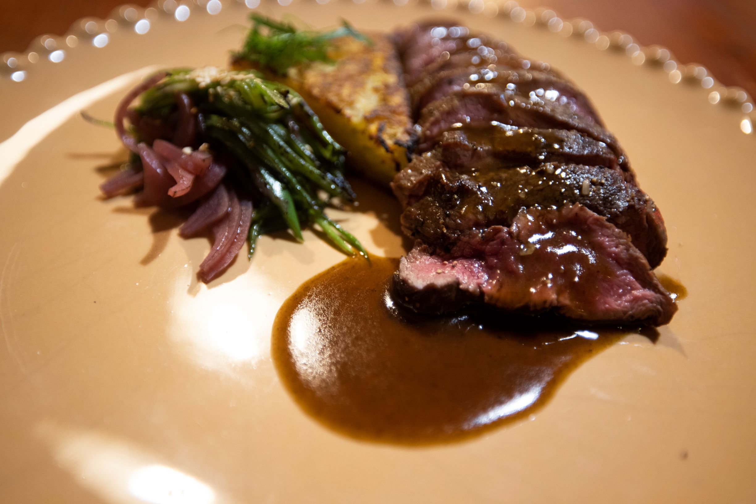Abre-se entretanto o apetite para a sobremesa, também ela feita de contrastes: banana de Santa Maria flamejada e acompanhada com uma bola de gelado de caramelo.