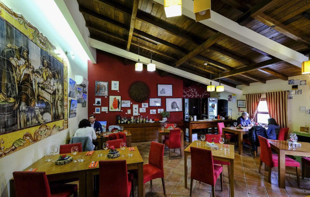 À falta de restaurante, é descer a rua até ao cinquentenário Retiro Azul, perto do Chafariz D. Maria I. “Tinha muita procura. As grandes especialidades eram o frango assado, as tortilhas de camarão e os filetes de pescada”, conta Óscar Fernandes, 52 anos. O restaurante esteve fechado seis anos, e nos últimos três, Óscar tem lutado para o relançar, fazendo-se valer da experiência como chef nas cozinhas das Pousadas de Portugal e em Angola. A mulher ajuda-o na cozinha e o filho na sala, decorada com painéis artísticos iluminados. Da carta, as lascas de bacalhau com broa, o polvo à lagareiro e a coxa de pato com legumes são capazes de cativar. Ao almoço há buffet, tudo conjugado com os bons vinhos da região.