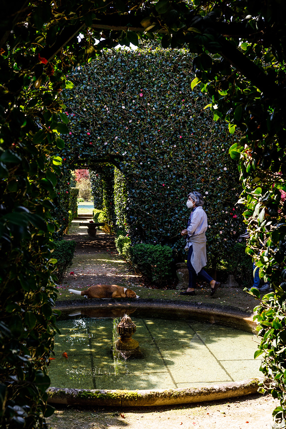 Estima-se que os jardins da Casa do Campo – um antigo solar que remonta ao século XII, e que em breve voltará a receber hóspedes -, tenham sido construídos no século XVIII, e é neles que se vê aquela que poderá ser uma das camélias mais antigas de Portugal. É um único pé e a topiária – a arte de moldar plantas – ali aplicada fá-la parecer um gigante guarda-sol, mas há outras formas: colunas, corredores em arco, casas com portão e casas de fresco, “para onde as senhoras se iam refrescar”, em dias de calor. Além de cameleiras, o jardim pinta-se ainda com azáleas e um centenário rododendro.