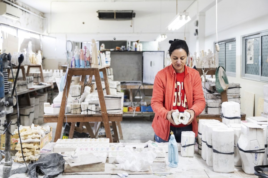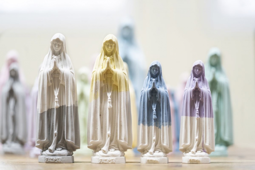A nossa viagem termina como começou: com a imagem da virgem Maria, que há 105 anos mudou a história desta região, fazendo nascer hotéis e restaurantes em cada rua, comércio e serviços. A marca TREZE, afinal, desse fenómeno. Desde 2015 que Sofia Neves escreve com êxito as letras da marca Treze, que mostra Fátima ao país e ao mundo através de imagens pouco vulgares, em diversas cores, moldes e feitios. Na Marfilar (fábrica de artigos religiosos e decorativos) já trabalharam dezenas de pessoas, agora o quadro de pessoal está resumido à família. Ironicamente, a empresa nunca foi tão conhecida – especialmente depois de Sofia ter ido trabalhar com os pais, convencendo-os a produzir a imagem de Nossa Senhora em cores: azul, verde, rosa, cinza ou lilás. Faz venda direta ao público, mas vende sobretudo online. Foi assim que começou esta aventura. Com a imagem de Maria, a mulher que mudou tudo em Fátima. De resto, como em cada uma das casas por onde passámos, já a prepararem-se para celebrar o maior acontecimento religioso do país, o primeiro sem restrições desde a pandemia: este 13 de maio.