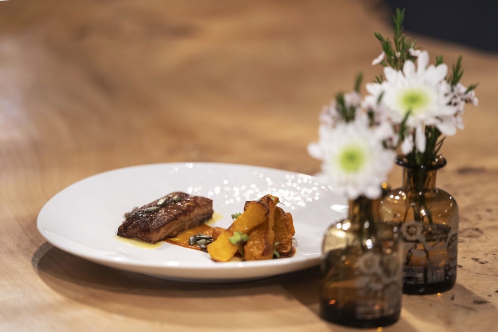 Para quem sonhou um dia ser bailarina, há sempre minúcia e delicadeza em tudo o que faz. “Há muitas pessoas que vêm só para estar, para usufruir do espaço. Foi também por isso que há um ano abrimos o restaurante”, conta. E lá, onde apenas se servem jantares, a chef Sílvia surpreende com um menu de degustação, que começa com uma entrada de ovo e salmão, ou creme de queijo firme com alecrim e mel, e continua com robalo do mar com polenta frita e molho de cebolinho; barriga de leitão com gomos de abóbora assada e tomilho, tudo com molho de laranja. No final, qualquer uma das sobremesas. Tal como haveremos de confirmar ao longo desta viagem pela gastronomia da região, a Escola de Hotelaria de Fátima tem deixado muitos e bons frutos espalhados pelas cozinhas e salas dos hotéis e restaurantes. Sílvia Santos é um desses exemplos. Ir ao Luz Houses e não experimentar um dos seus pratos é imperdoável.