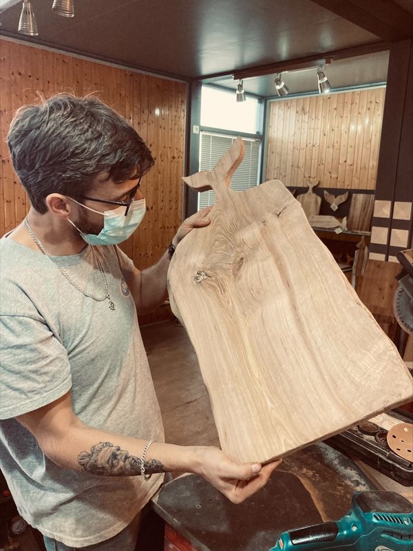 O interesse voltou e a ideia de desenhar tábuas para servir comida surgiu recentemente, antes do verão passado. A minha namorada prepara jantares vegans em eventos de Yoga e tinha sempre dificuldade em encontrar tábuas onde servir. Decidi fazer”.