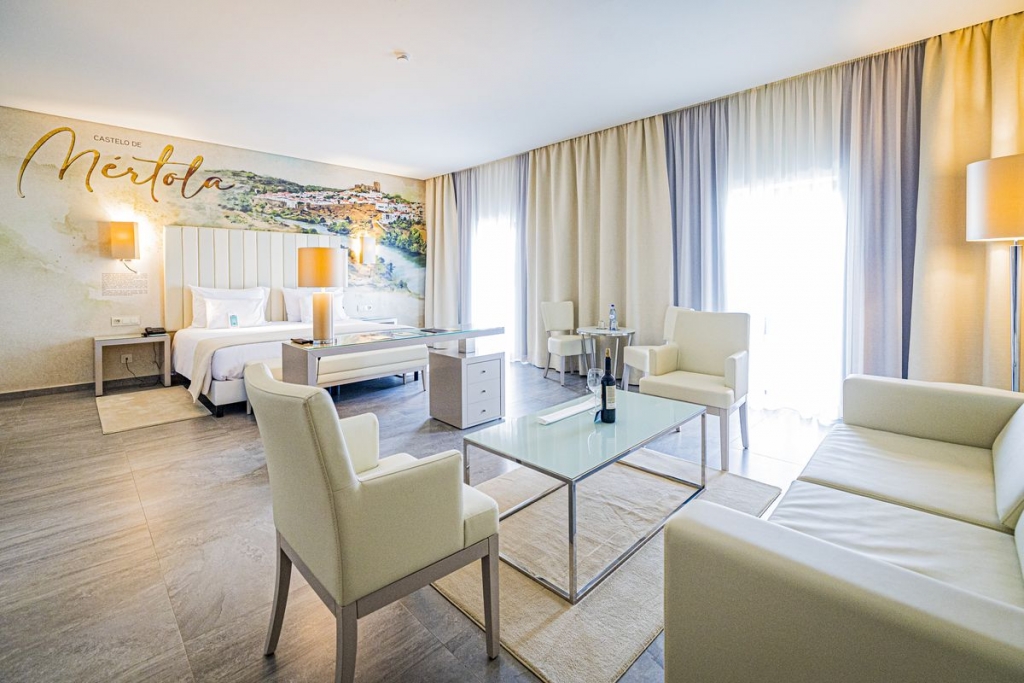 Imerso nos 1620 hectares da Herdade Clube de Campo (que muitos poderão associar ainda ao nome Herdade de Santa Vitória), o recém inaugurado Vila Galé Collection Monte do Vilar pode ser um refúgio para casais que procuram o sossego entre a natureza, pois recebe apenas hóspedes com idade acima dos 16 anos. Decorados em verde e roxo, os 12 quartos homenageiam as “maravilhas do Alentejo” com papéis de parede ilustrados sobre as camas, cada um com código QR com informação sobre o monumento – o Castelo de Monsaraz, o Paço Ducal de Vila Viçosa e o Templo Romano de Évora, entre outros. No edifício principal funcionam a piscina exterior, o bar Fidélio, duas salas de estar com livros e jogos e o restaurante Inevitável, cujo menu tem pratos alentejanos com toque Vila Galé. Os vinhos são feitos na herdade, morada também do Nap Kids e do Alentejo Vineyards & Olive.