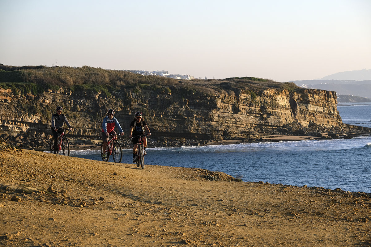 De ténis, calções e capacete na cabeça, Guilherme Caetano pedala energicamente à frente do grupo, enquanto o estacionamento de Ribeira de Ilhas vai ficando cada vez mais mais para trás. “Esta praia é uma das que integra a Reserva Mundial de Surf da Ericeira, única na Europa e que permite que tanto principiantes como surfistas mais experientes possam surfar sete ondas de classe mundial”, explica, parado no topo da falésia e com o sol a pôr-se em tons de laranja.