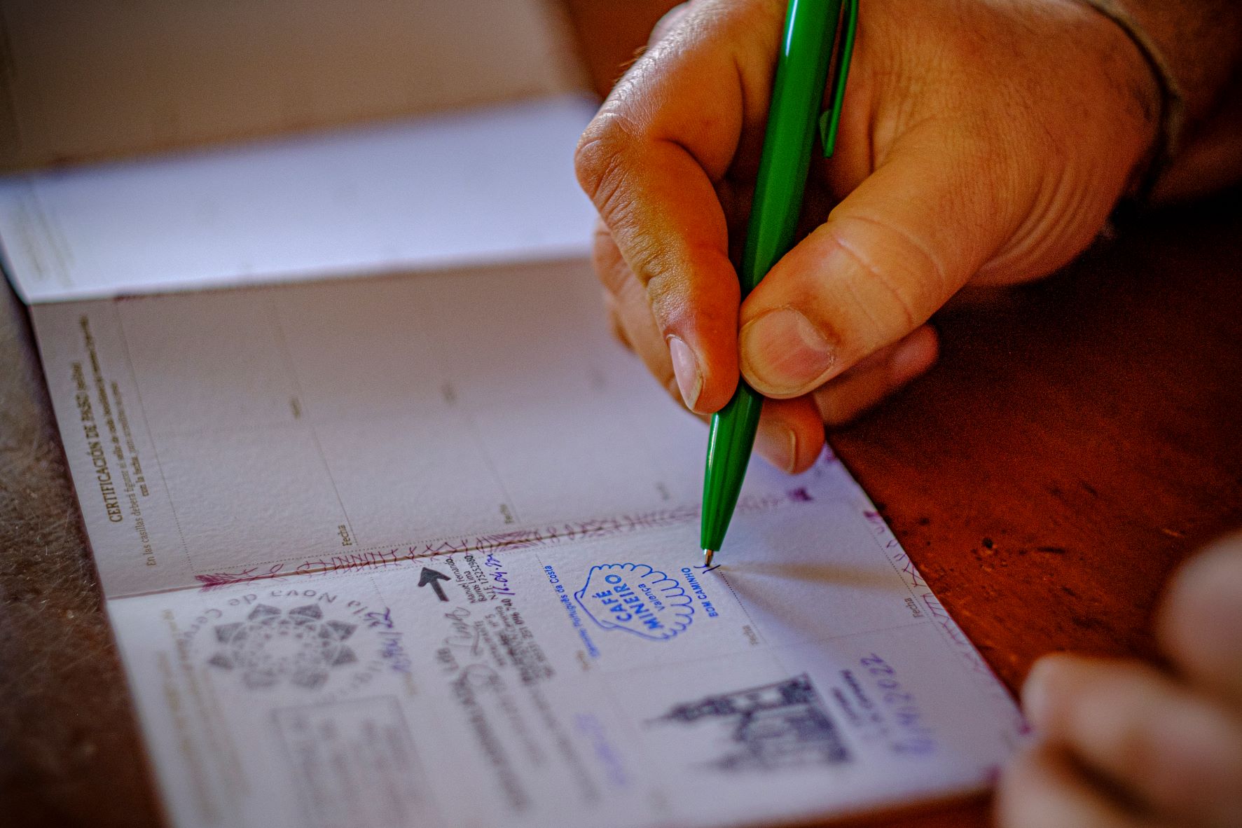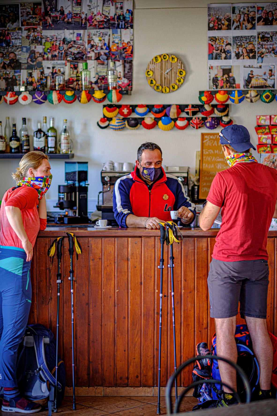 “Começou com um cartaz. Havia aqui um buraco e tapei-o com ele. O primeiro peregrino [com direito a fotografia] é australiano. Foi no dia 2 de novembro de 2014. Abri o café no dia 1, conta Tó Lima, que a partir daí não mais parou de colecionar histórias e rostos a sorrir nas paredes. Gente de mochila às costas, vinda sobretudo da Alemanha. “O peregrino alemão é o que mais manda aqui. Setenta e cinco por cento são alemães. Eles adoram este Caminho [Português da Costa], porque tem tudo: quatro dias de mar, dois dias de rio e seis dias de montanha. Não é nada aborrecido. É um espetáculo”, resume.
