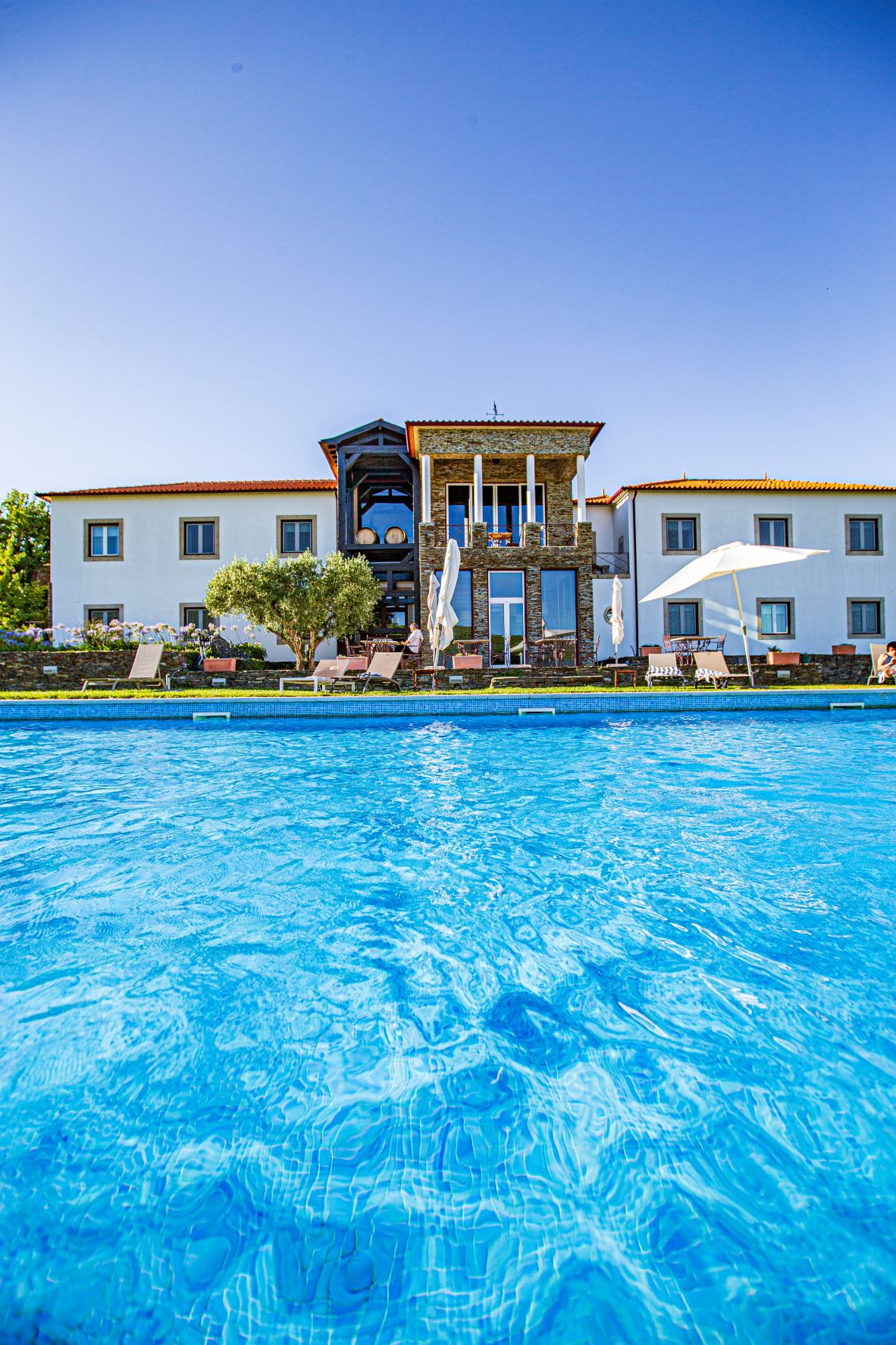 E uma vez contagiado pela indolência própria do verão, dificilmente se acham forças para pousar o copo e voltar à estrada. Mas a poucos quilómetros dali há pelo menos uma boa razão para o fazer. Do outro lado do rio, já no concelho de Sabrosa, a QUINTA DO PORTAL sobressai na paisagem com as linhas modernas do seu icónico armazém de envelhecimento, projetado pelo arquiteto Siza Vieira. O edifício, revestido a cortiça e xisto, acolhe ainda um centro de visitas e sala de provas.