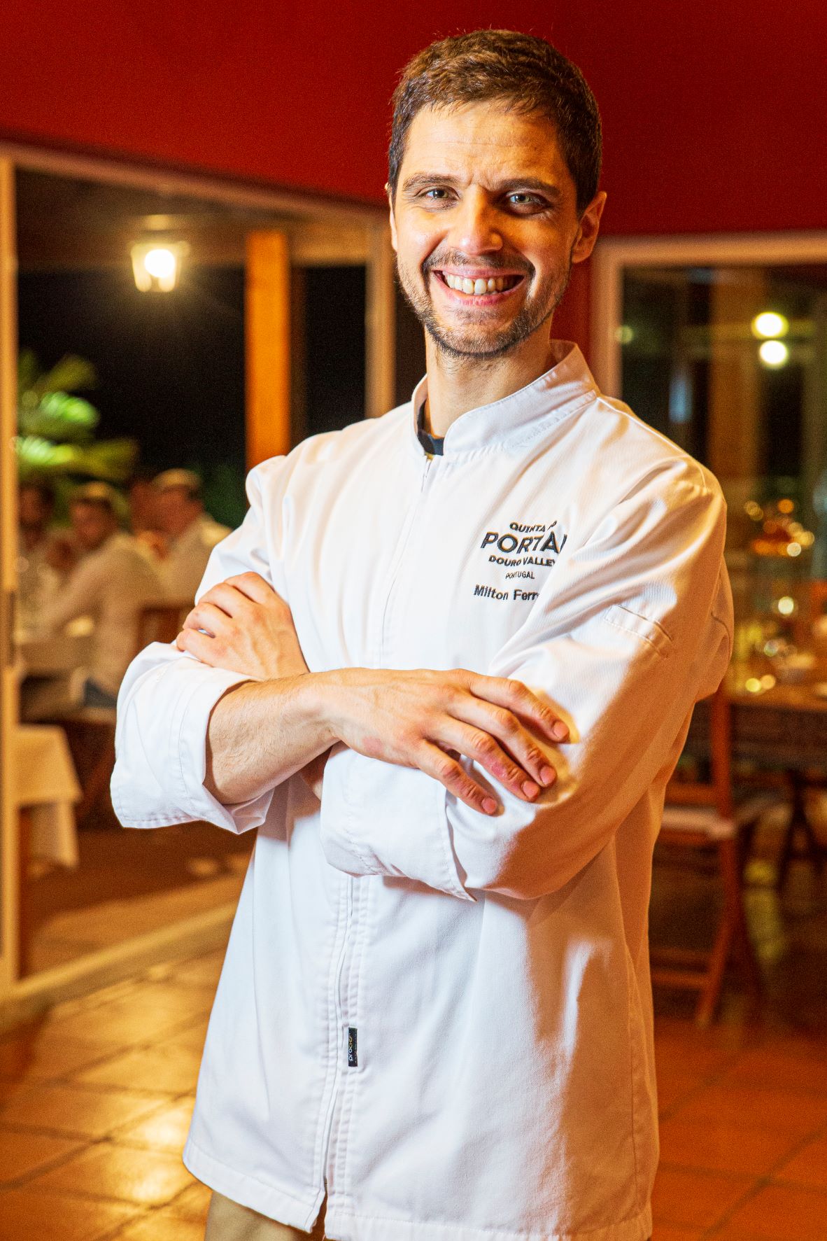 A Quinta do Portal tem ainda um restaurante de cozinha de autor que é por si só razão de visita. A caminho da varanda junto às vinhas onde é servido o jantar, passa-se pela horta de onde saem muitos dos ingredientes utilizados pelo chef Milton Ferreira. Muitos outros vêm de produtores locais, mas há também aqueles que ali chegam de longe. É que, sendo os sabores do Douro o grande pilar desta cozinha, também a gastronomia internacional e as muitas viagens que fez inspiram as criações que chegam à mesa. Nas palavras do chef, trata-se de uma “simbiose entre as receitas tradicionais e as técnicas e ingredientes de todos os locais que visitei”. Há menus de quatro ou cinco momentos harmonizados com os vinhos da quinta, ou uma seleção criada à medida, que há de começar, ainda no couvert, como uma surpreendente manteiga aromatizada com laranja. O bacalhau a baixa temperatura, com puré de feijão branco e açafrão, ou a bochecha de porco com redução de vinho do Porto – um clássico que surge frequentemente reinventado -, são algumas das propostas do chef. “De tudo o que vejo, provo, vivo nascem estas criações”, remata.