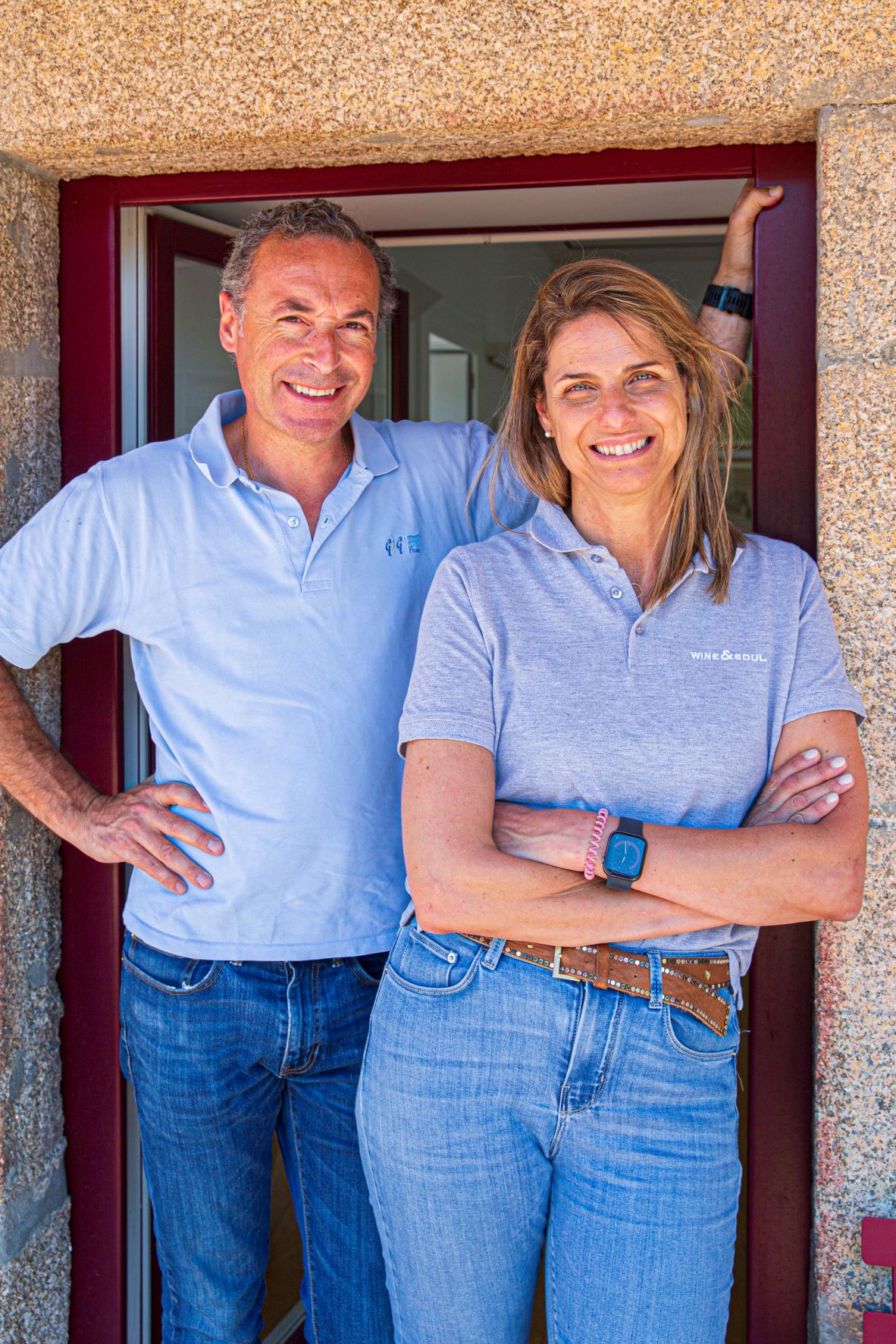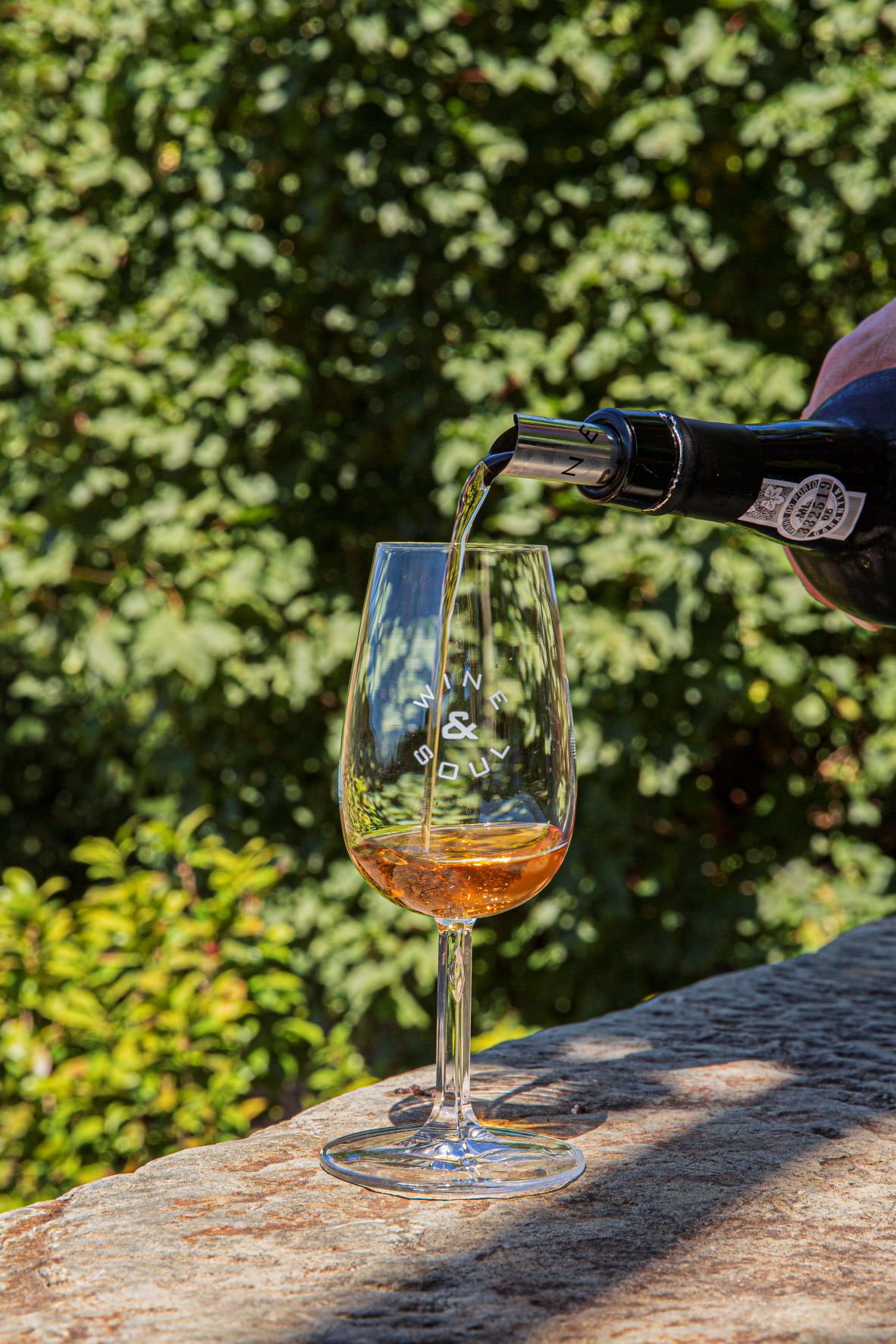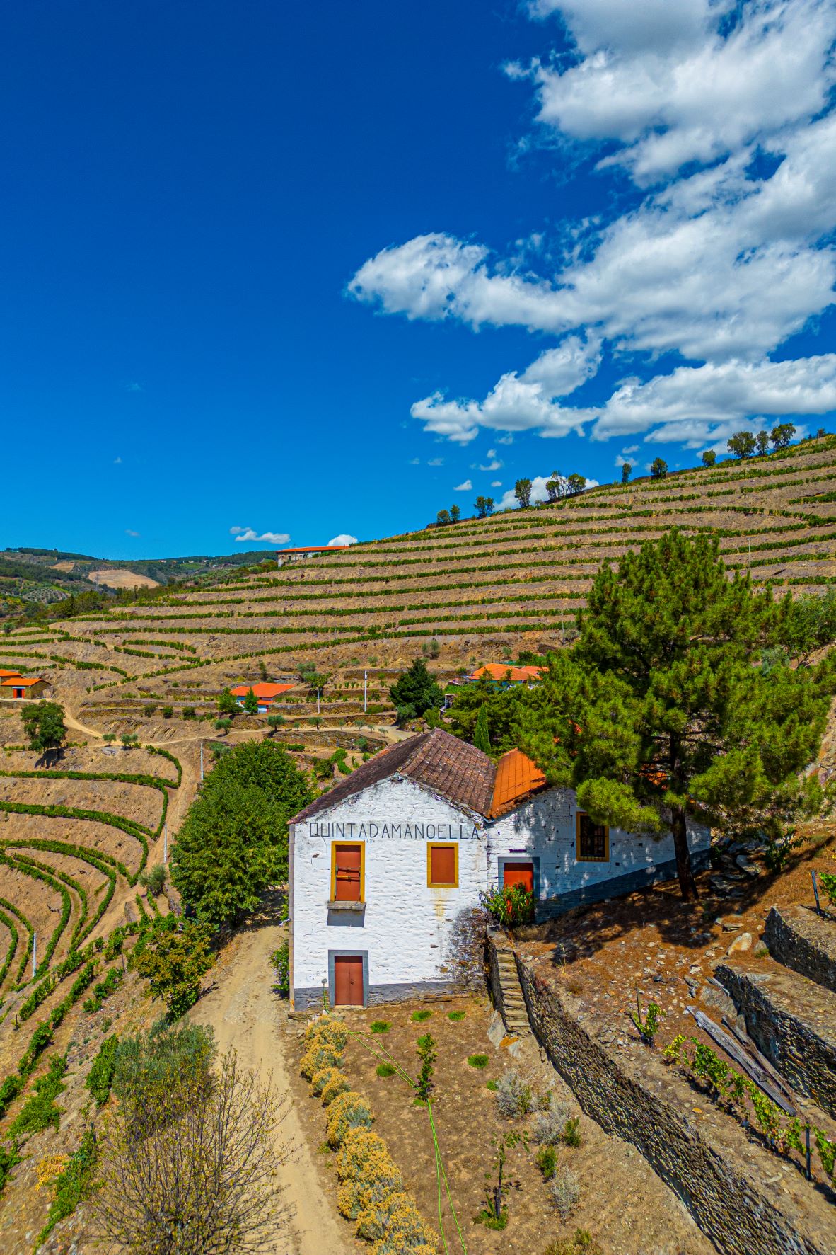 Mais acima, em Vale de Mendiz, damos de caras com a adega do WINE & SOUL, um projeto criado em 2001, por um casal de enólogos que tinha o sonho de fazer um vinho em conjunto. Sandra Tavares e Jorge Serôdio Borges, ela lisboeta, ele duriense, começaram por comprar uma pequena parcela de vinha, de onde nasceu o primeiro vinho da marca, o Pintas. Desde então, foram adquirindo mais terrenos e procurando particularmente vinhas velhas no vale do Pinhão, para as deixar falar por si mesmas. “Foi o que nos inspirou a criar vinhos de parcelas, com a identidade do terroir. A mistura já está feita na vinha, que cria o seu próprio equilíbrio entre castas. As vinhas velhas ensinam-nos muito, a forma como são resilientes e se auto regulam”, comenta Sandra. A Quinta da Manoella é uma dessas propriedades especiais, com vinhas com mais de 100 anos, protegidas por manchas de bosque e olival. “É uma manta de retalhos, e só assim faz sentido”, realça a produtora.