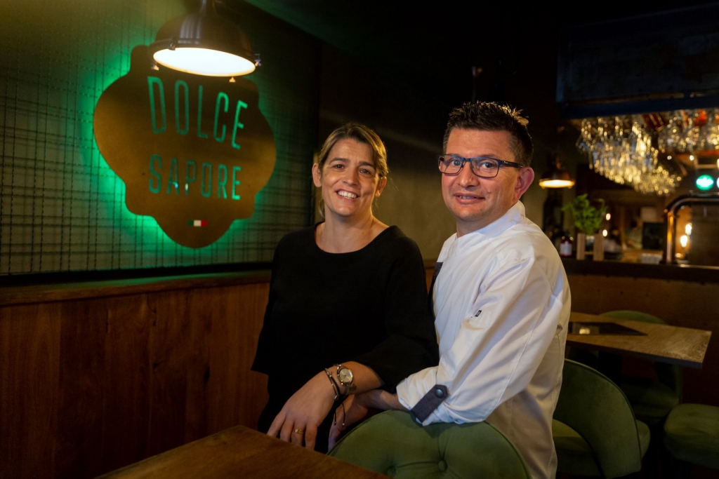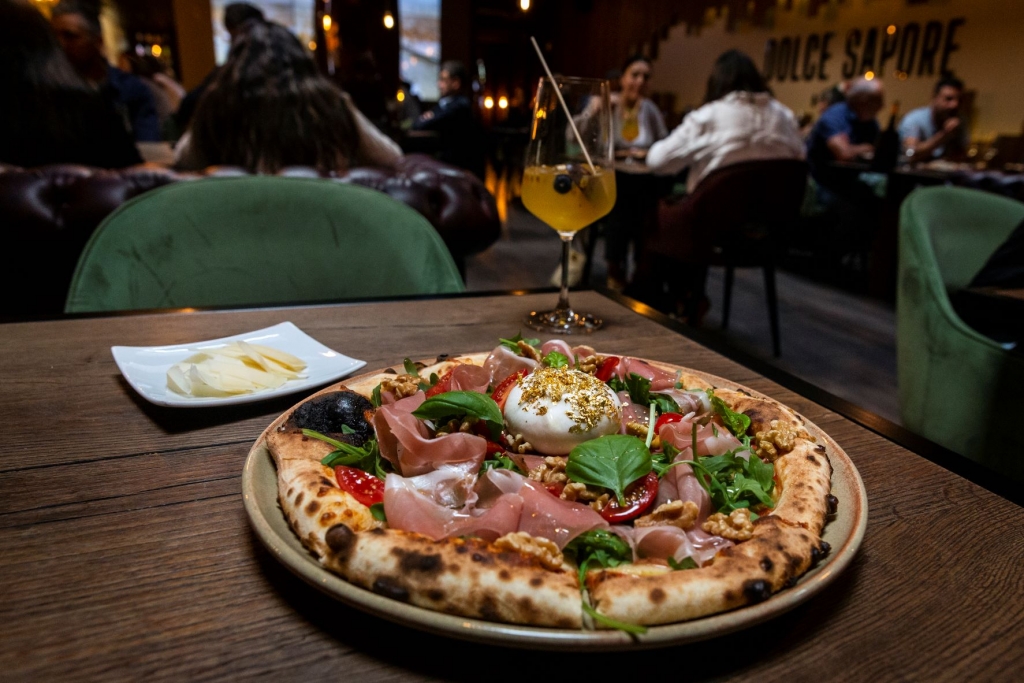A fermentação lenta e um processo de maturação em frio ainda mais demorado – 72 horas -, tornam a massa fina, ao estilo napolitano, do Dolce Sapore, ainda mais leve e crocante. O chef e pizaiolo Marinho Sousa não faz por menos, e põe ao serviço a experiência de 25 anos em cozinha italiana. Uma das estrelas da casa é a piza Dolce Sapore D’Ouro, inspirada nos ingredientes favoritos da mulher, Teresa. Leva maçã, speck, mel, nozes, mozarela, burrata e folha de ouro. Além das pizas clássicas e da seleção criativa do chef, a carta tem ainda pastas, saladas, bruschette e criações que cruzam com a gastronomia portuguesa e os gostos pessoais do casal. É exemplo o bife Nostru, servido com redução de vinho do Porto, a francesinha feita com massa de piza, e o bacalhau Dolce Sapore, um pão recheado com bacalhau em cebolada, batata crocante e mozarela gratinada.