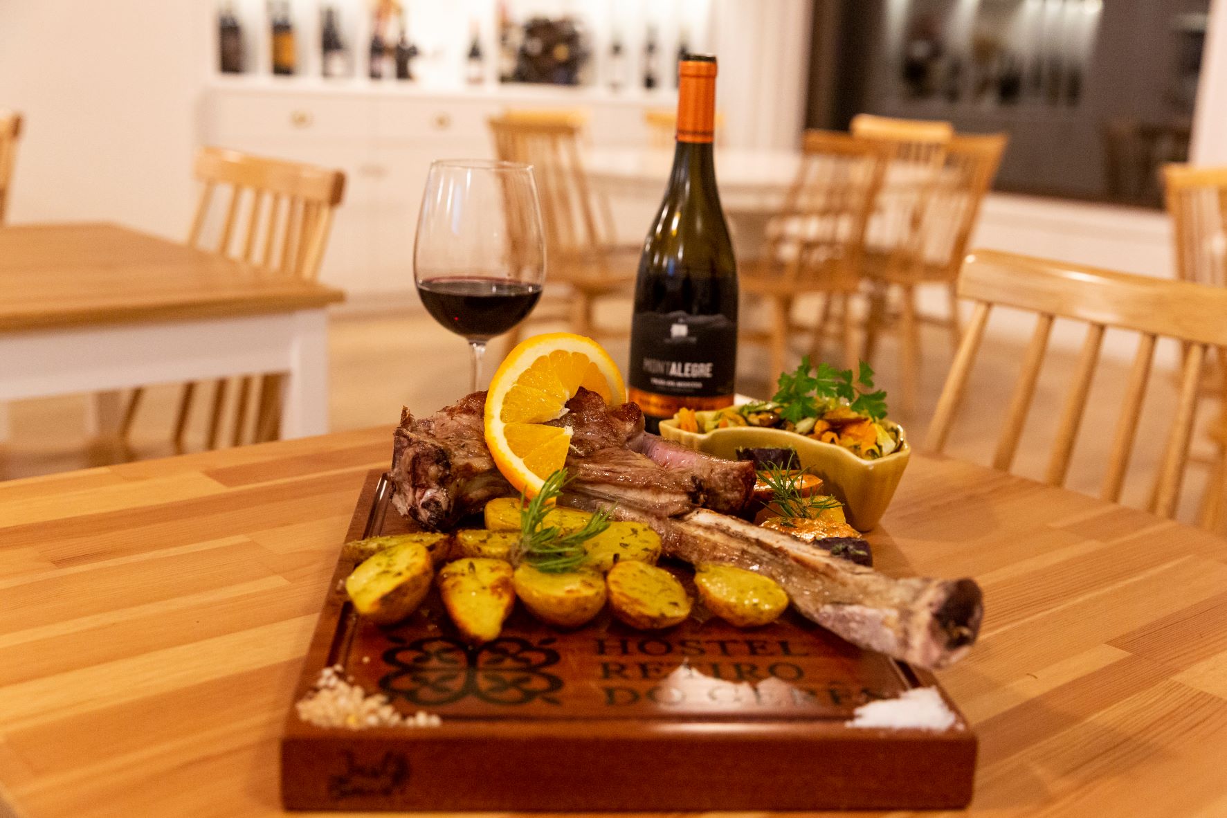 À porta, uma expressão popular resume bem o espírito hospitaleiro do povo montalegrense: “Entre. Quem é?”. De portas abertas aos visitantes que queiram conhecer a gastronomia tradicional do Barroso casada com os novos vinhos do concelho, a Taverna do Mercado, é o mais recente projeto dos irmãos Gonçalves. O pequeno restaurante, de ar rústico e ambiente acolhedor, surgiu como complemento aos vinhos e ao alojamento, a Casa da Avó Chiquinha, e é feito de referências à cultura local e ao vinho, tanto na decoração como no prato. Nesta cozinha de memória, o cozido à Barrosã tem especial destaque, servido com um delicioso arroz de feijão. O bacalhau com crosta de pão de centeio é outra interpretação dos produtos locais do chef João, a que se junta uma carta de petiscos durante a tarde, focada no fumeiro regional, e sugestões menos tradicionais, como o hambúrguer e a francesinha com carne barrosã. No final da refeição aconselha-se um passeio pelo Parque do Cávado, que tem uma agradável zona de verde junto ao espelho de água e é o último – ou o primeiro, para quem começa aqui a viagem – espaço de lazer urbano do rio.
