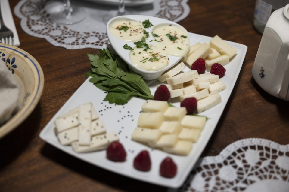 Comida vegetariana, chouriço à contrabandista e muito queijo